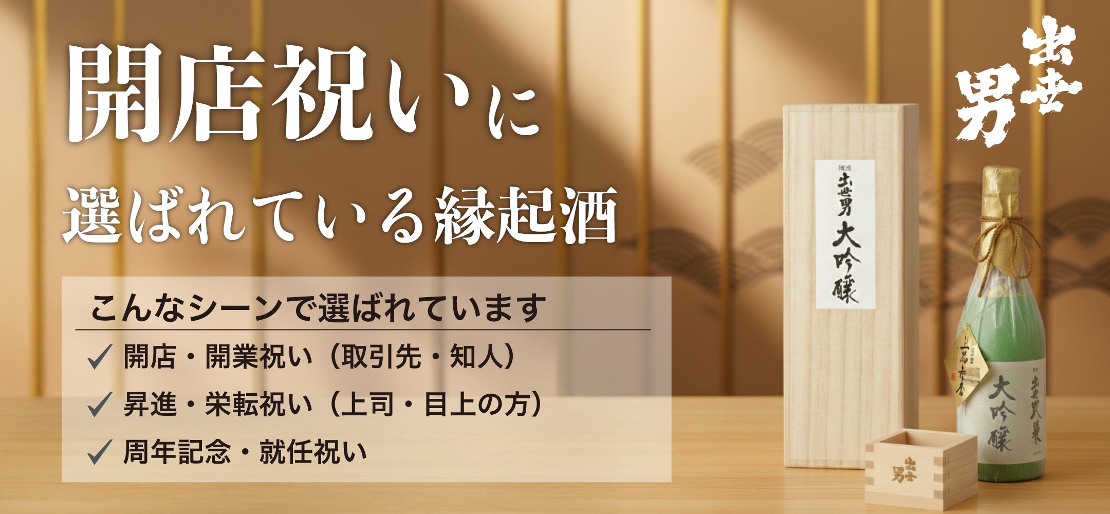 代表銘柄である「出世男」は「立身出世」を願う夢と希望を込めて名付けられた縁起酒です。