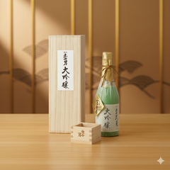 本商品は、調湿効果や防虫効果に優れた**「桐箱」**に納めてお届けします。 金色の和紙で装飾されたボトルと、温かみのある桐箱のコントラストは、まさに芸術品。 開封するその瞬間から、特別な時間が始まります。
